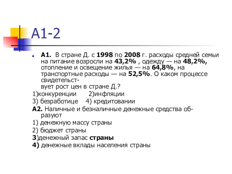 А1. В стране Д. с 1998 по 2008 г. расходы средней семьи