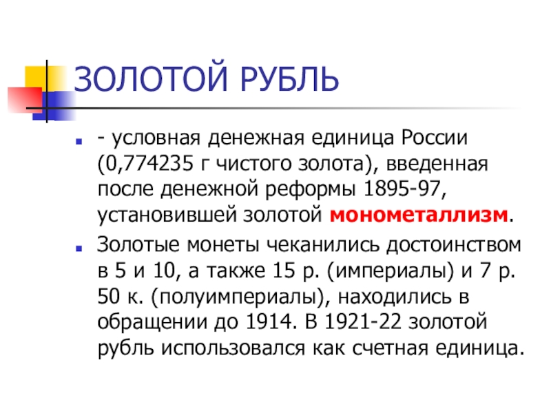 Слайд 12ЗОЛОТОЙ РУБЛЬ