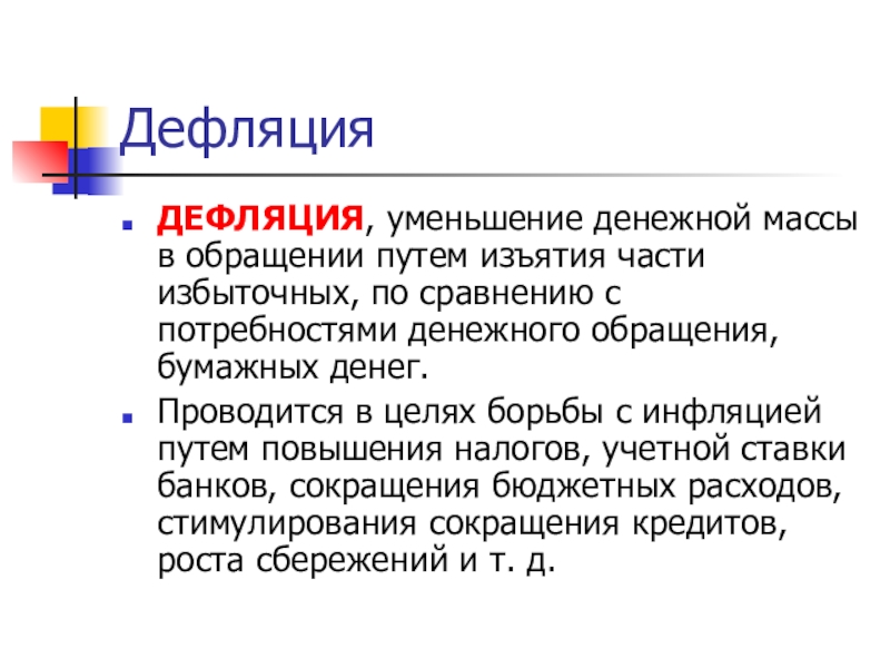 ДЕФЛЯЦИЯ, уменьшение денежной массы в обращении путем изъятия части избыточных, по