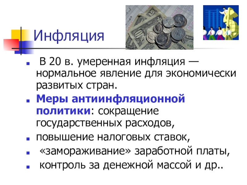 В 20 в. умеренная инфляция — нормальное явление для экономически