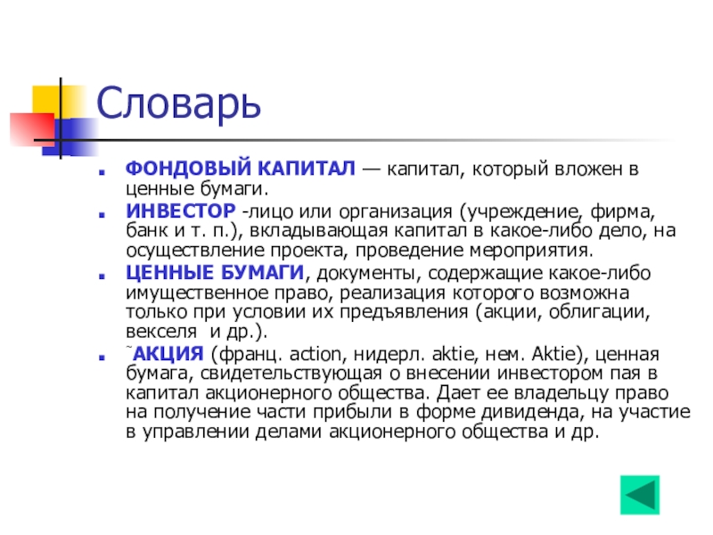 ФОНДОВЫЙ КАПИТАЛ — капитал, который вложен в ценные бумаги.