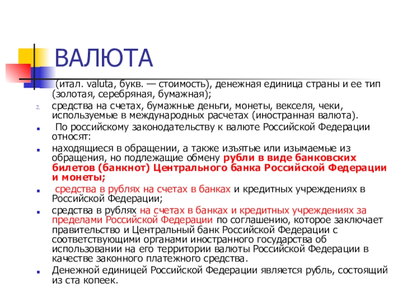 (итал. valuta, букв. — стоимость), денежная единица страны и ее