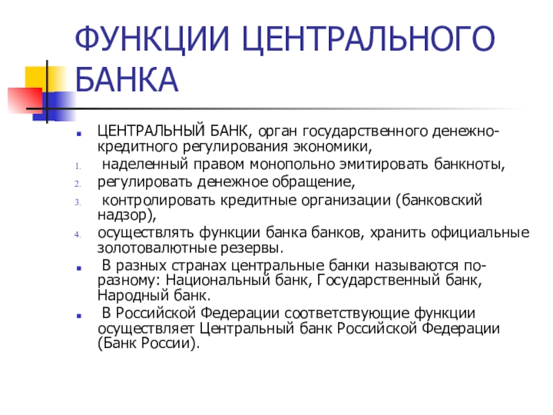Слайд 25ФУНКЦИИ ЦЕНТРАЛЬНОГО БАНКА