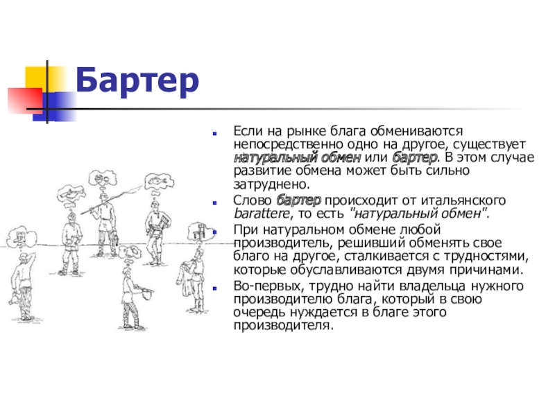 Слово бартер происходит от итальянского barattere, то есть "натуральный обмен".