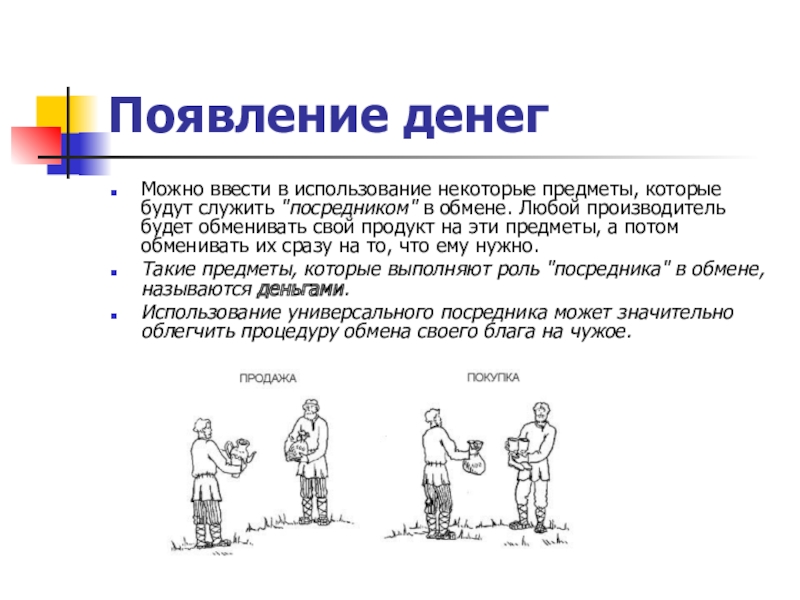 историческом этапе. В докапиталистических формациях роль денег выполняли различные товары (шкуры зверей, зерно, скот), постепенно она перешла к благородным металлам (золоту, серебру), наилучшим образом отвечающим требованиям денежного товара.