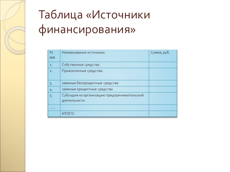 ИСТОЧНИКИ ФИНАНСИРОВАНИЯ ПРОЕКТА