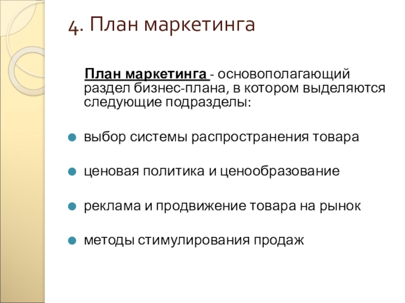 План маркетинга - основополагающий раздел бизнес-плана, в