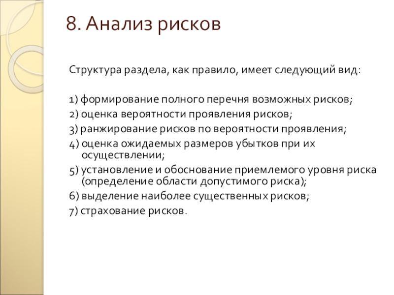 4) оценка ожидаемых размеров убытков при их осуществлении;