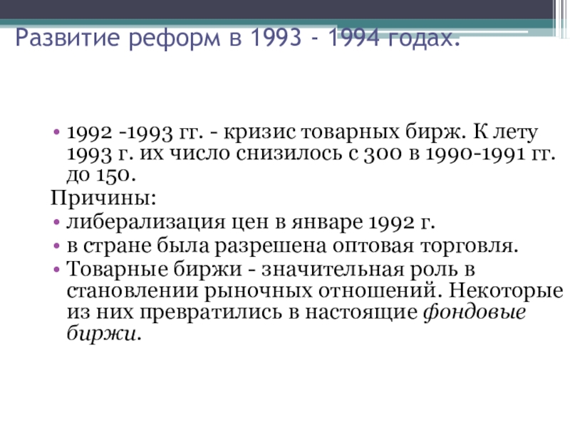 1990 – 1991гг. – отказ от реальных эк. реформ