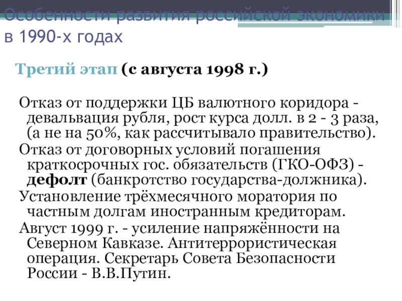 г. – обвальное падение курса рубля ( в 3 раза за 2 месяца).