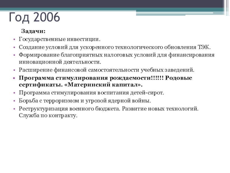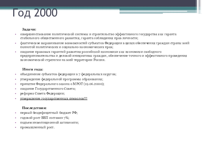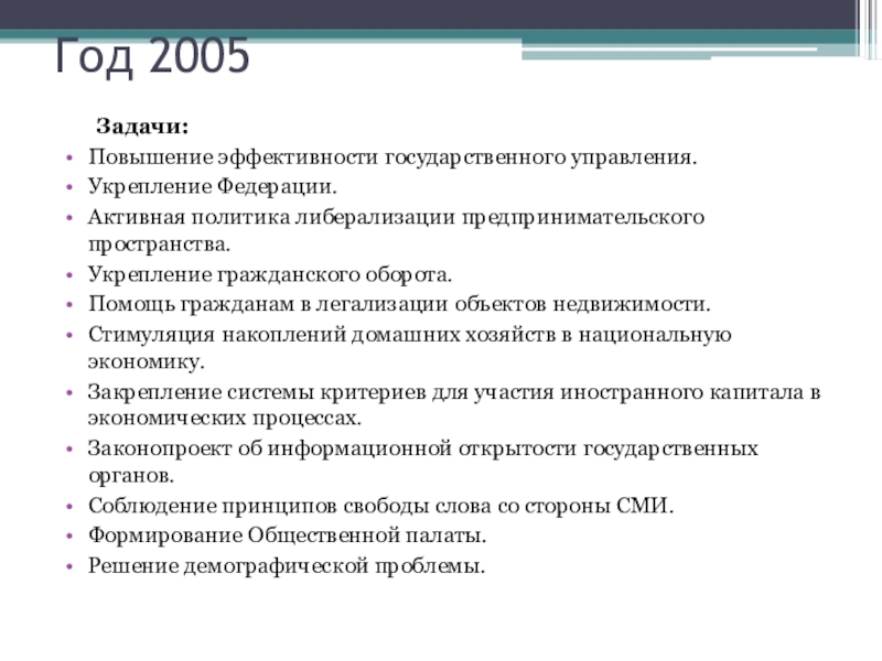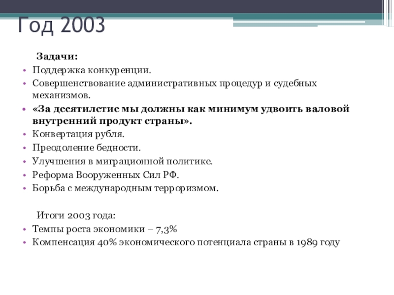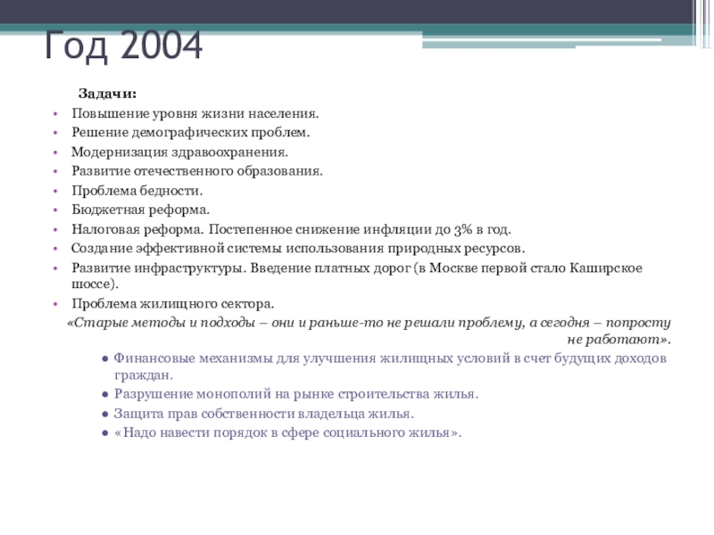 Налоговая реформа. Постепенное снижение инфляции до 3% в год.