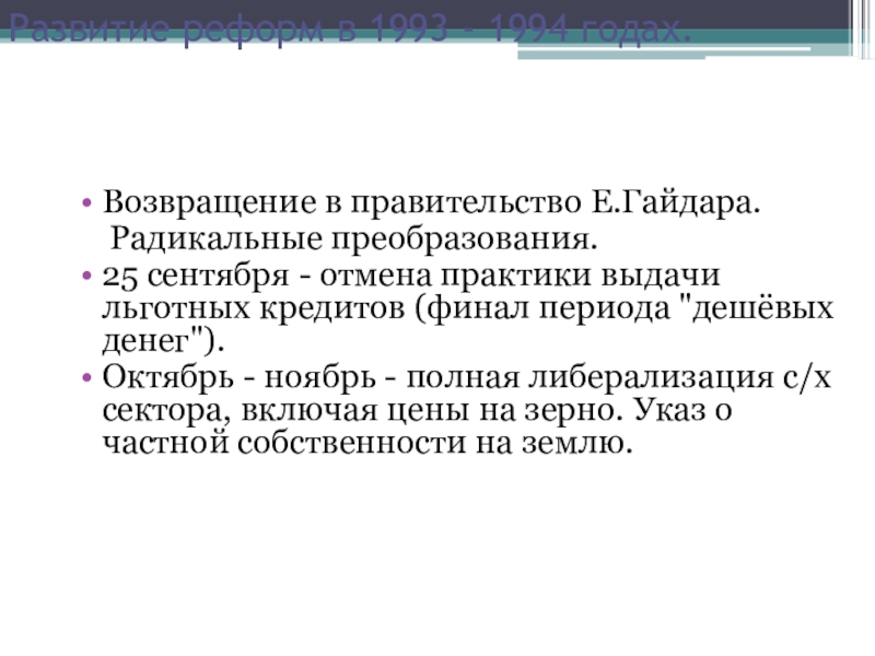 Слайд 5Программа эк реформ Е.Гайдара (опубликована в июле 1992г)