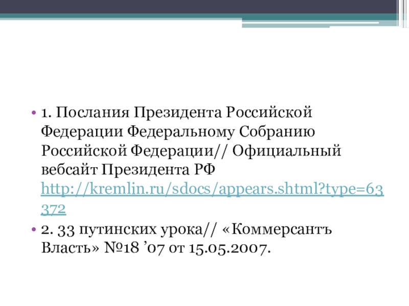 Слайд 381. Послания Президента Российской Федерации Федеральному Собранию Российской Федерации// Официальный вебсайт