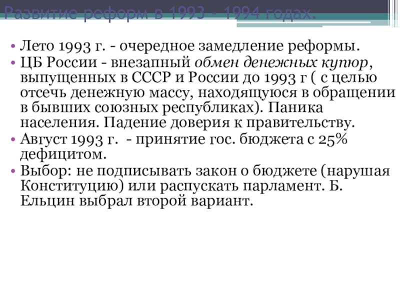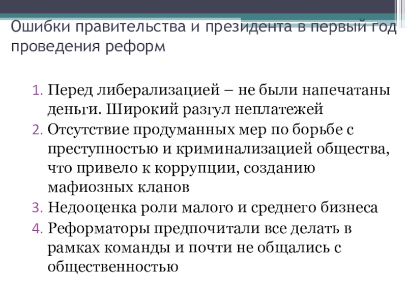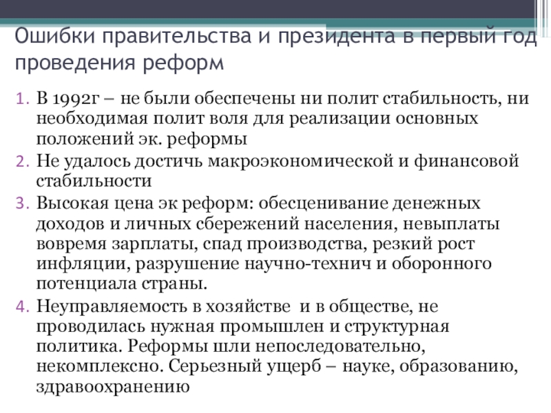 Слайд 10Ошибки правительства и президента в первый год проведения реформ