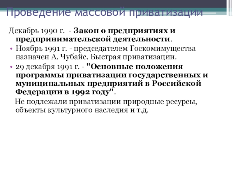Приватизация, развитие предпринимательства, создание институциональных предпосылок эффективного рыночного хозяйства и эк роста