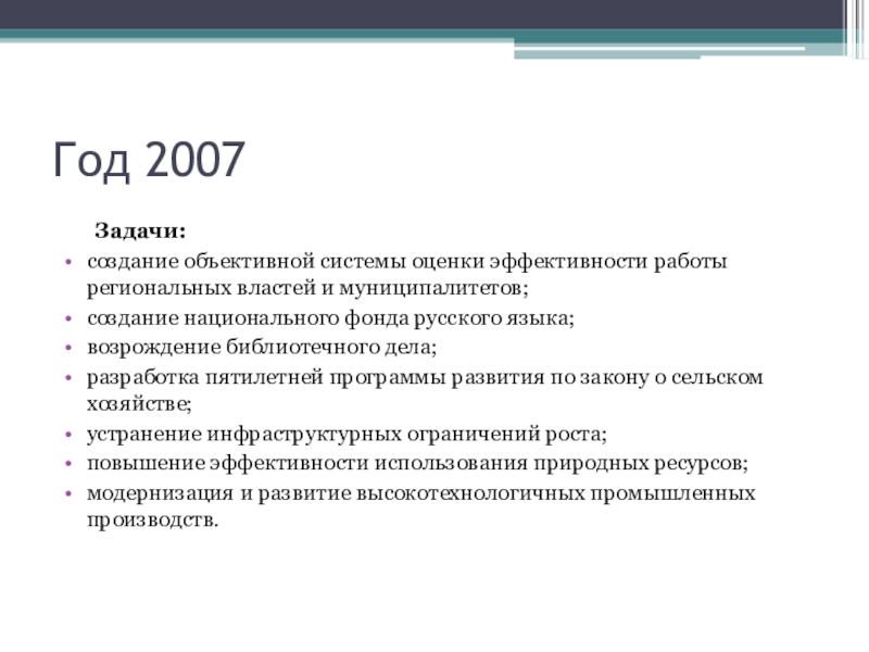 создание объективной системы оценки эффективности работы региональных властей и муниципалитетов;