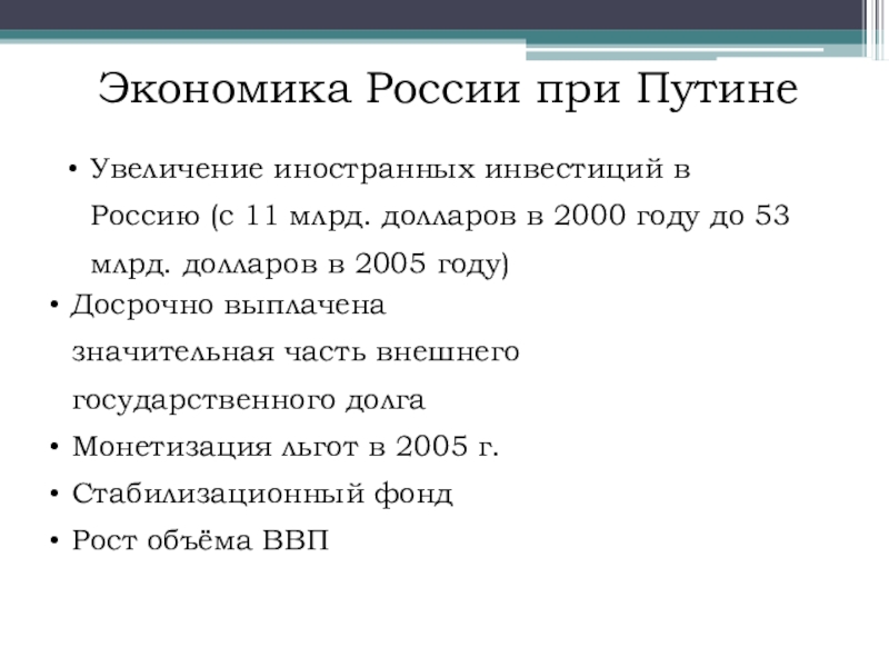 Закрепление системы критериев для участия иностранного капитала в экономических процессах.