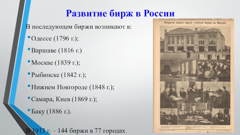 Слайд 18Возрождение бирж в России в 1990-е гг.