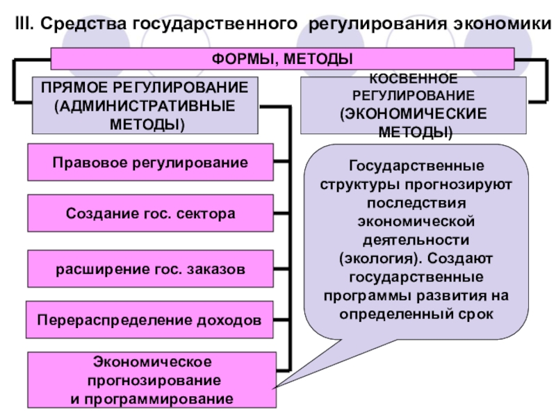 Государственные структуры прогнозируют последствия экономической деятельности (экология). Создают государственные программы развития на определенный срок