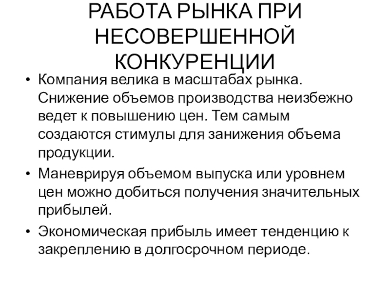 Слайд 12РАБОТА РЫНКА ПРИ НЕСОВЕРШЕННОЙ КОНКУРЕНЦИИ