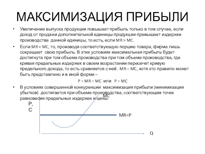Слайд 9МАКСИМИЗАЦИЯ ПРИБЫЛИ
