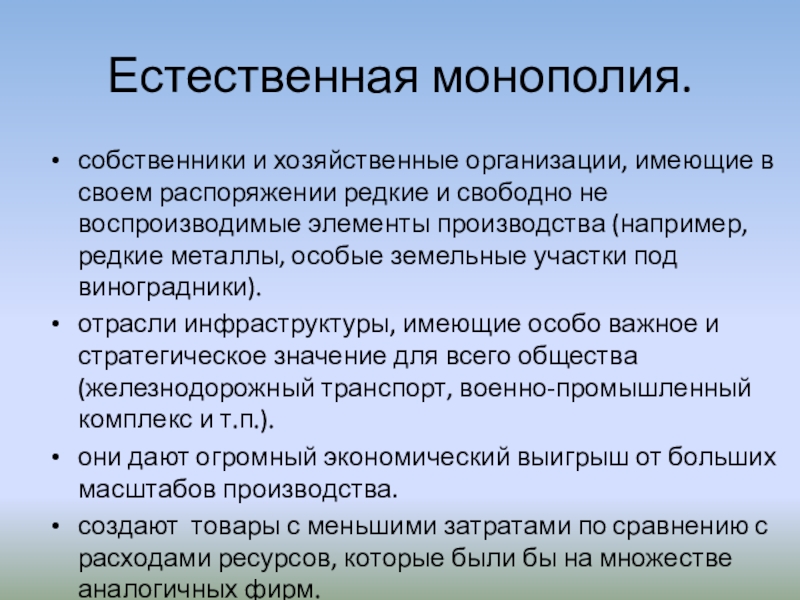 Слайд 9Естественная монополия.