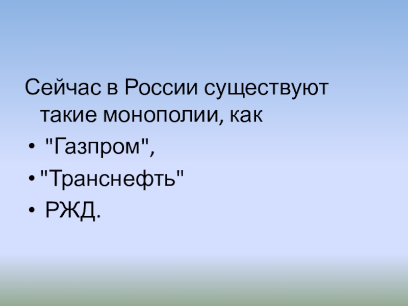 Слайд 16Сейчас в России существуют такие монополии, как