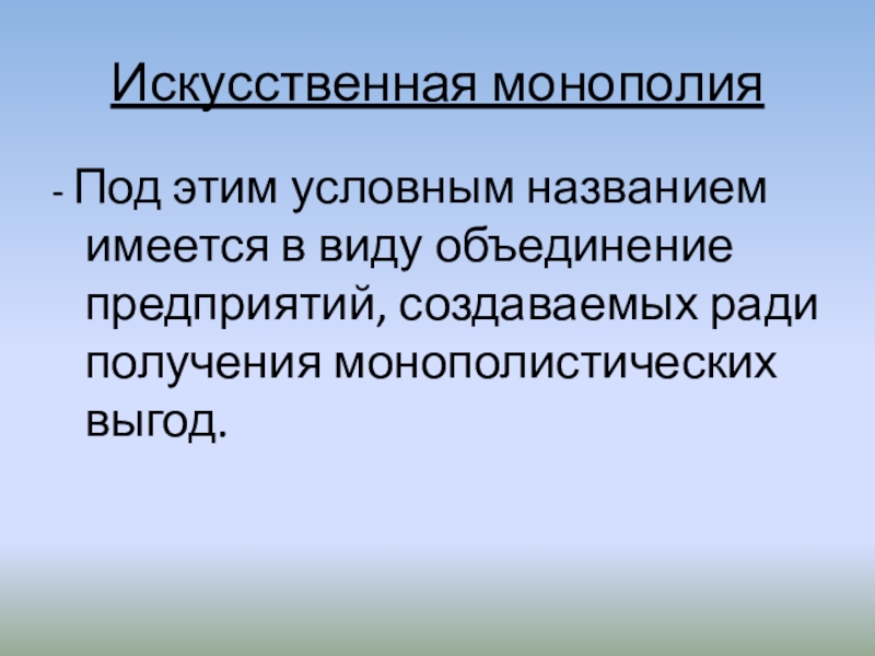 Слайд 11Искусственная монополия
