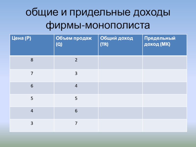 Слайд 17общие и придельные доходы фирмы-монополиста