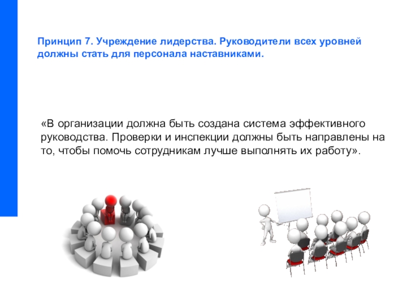 Принцип 7. Учреждение лидерства. Руководители всех уровней должны стать для персонала наставниками.