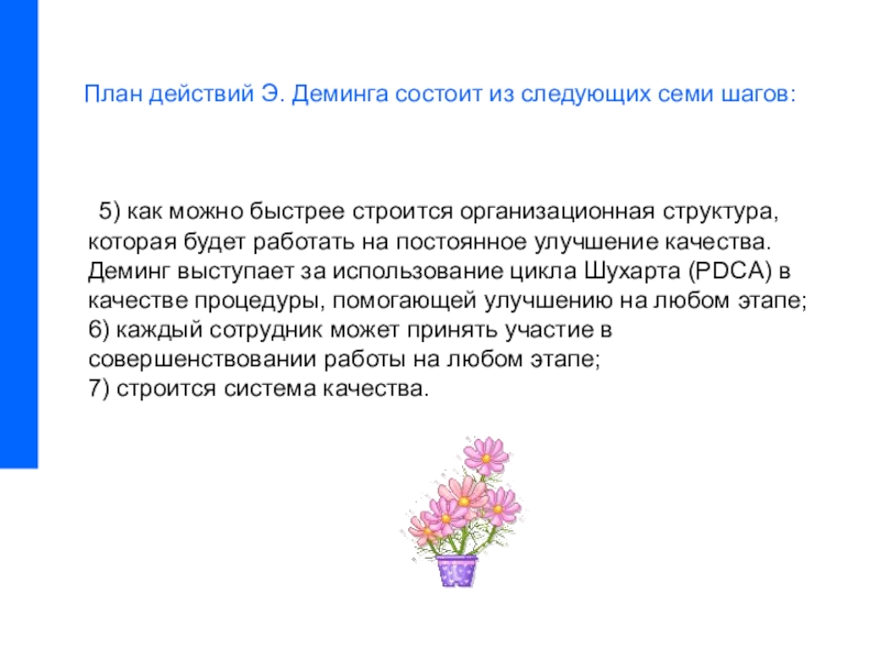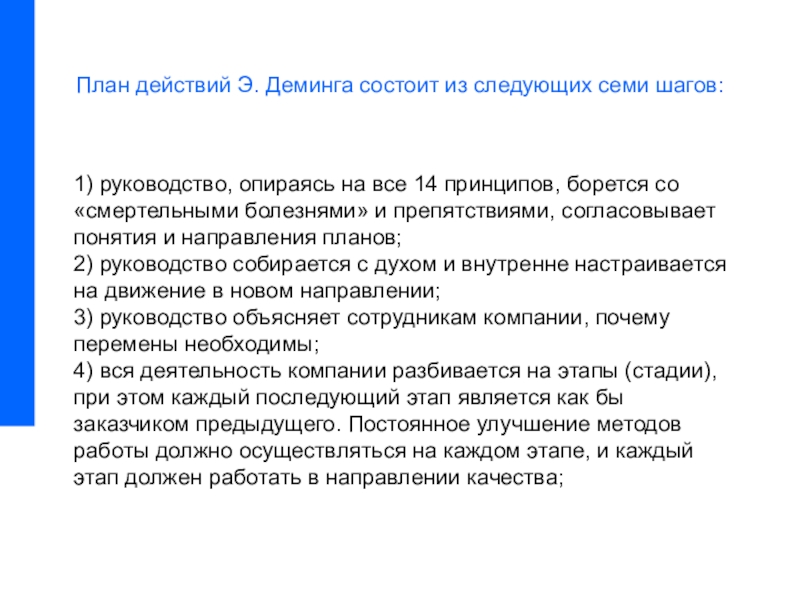 План действий Э. Деминга состоит из следующих семи шагов:
