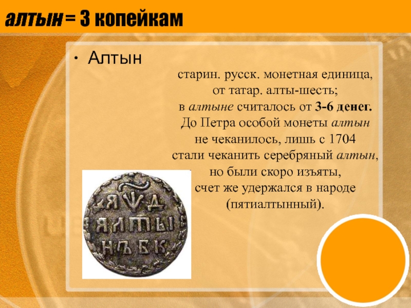 Слайд 2алтын = 3 копейкам