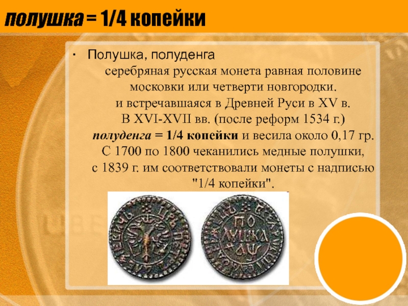 Слайд 5полушка = 1/4 копейки