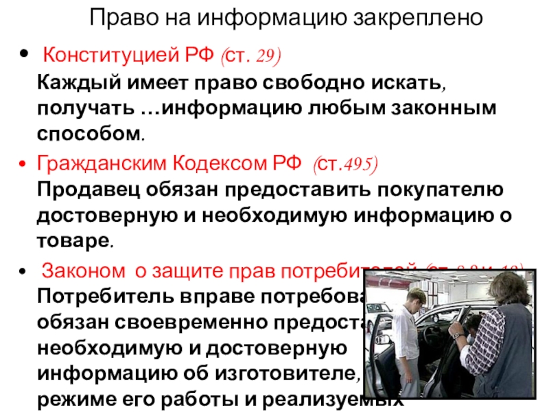 Право на информацию закреплено Конституцией РФ (ст. 29)