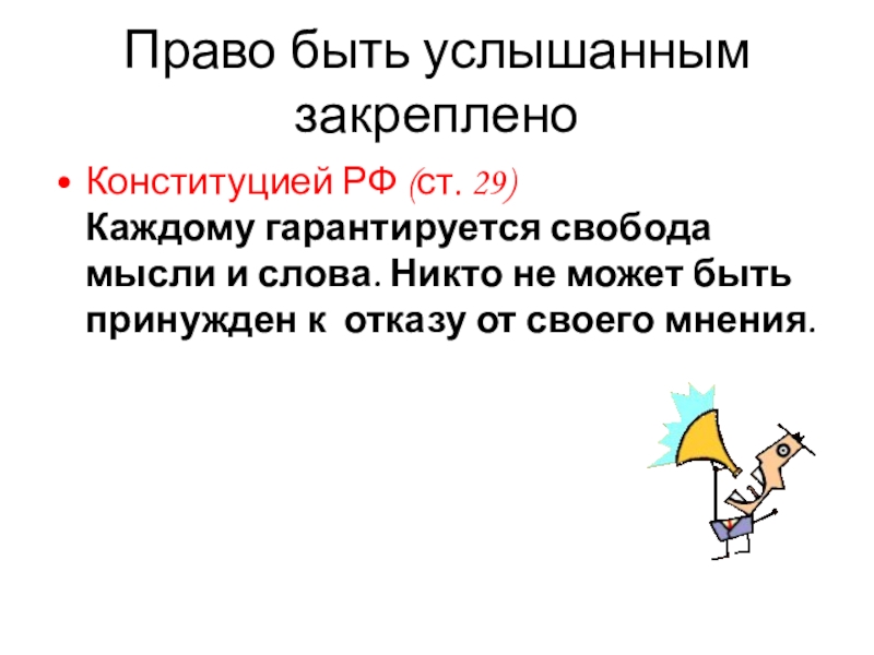 Право быть услышанным закрепленоКонституцией РФ (ст. 29)
