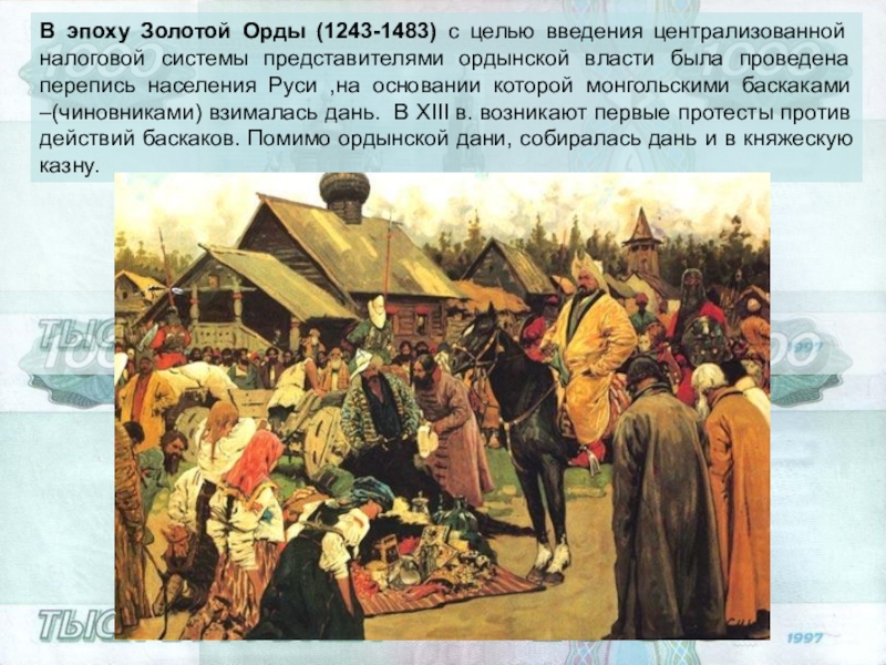 Слайд 3В эпоху Золотой Орды (1243-1483) с целью введения централизованной налоговой системы