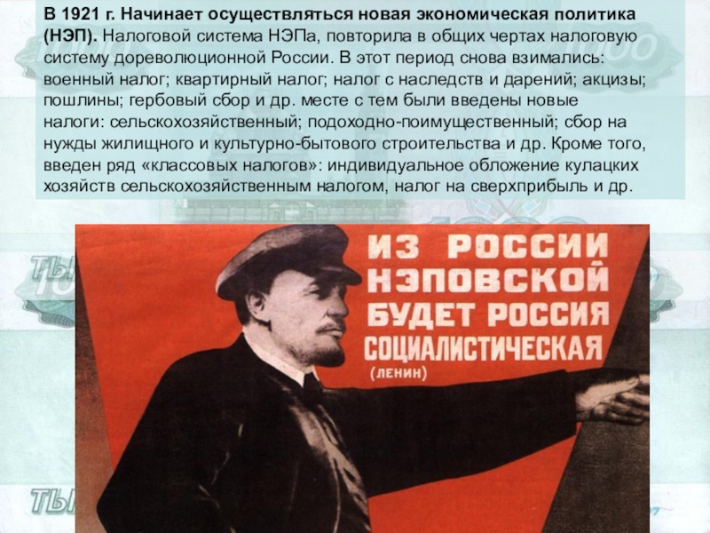 Слайд 12В 1921 г. Начинает осуществляться новая экономическая политика (НЭП). Налоговой система