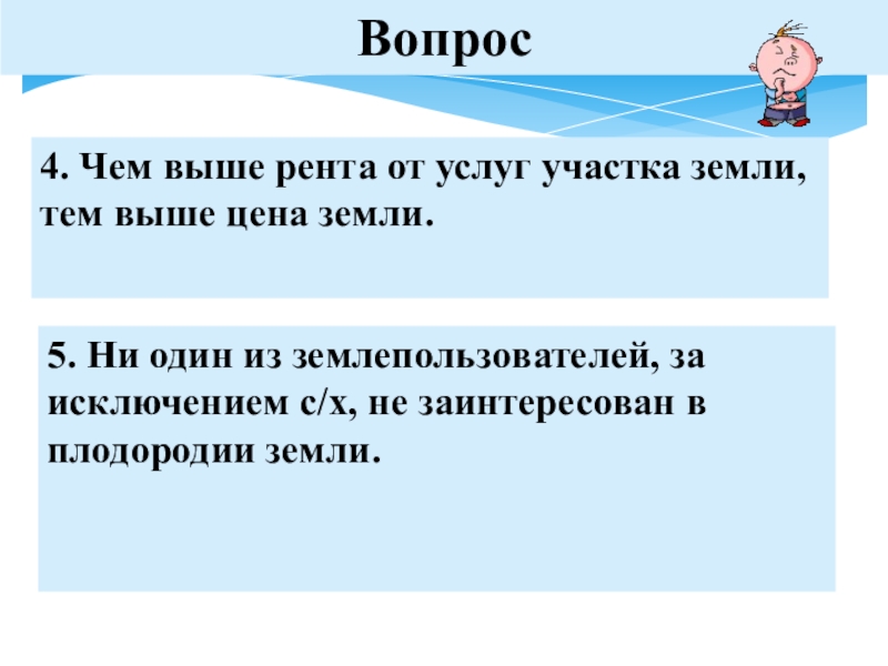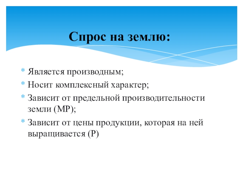 2. Величина ренты, получаемой с некоторого участка земли, определяется уровнем спроса на этот участок.