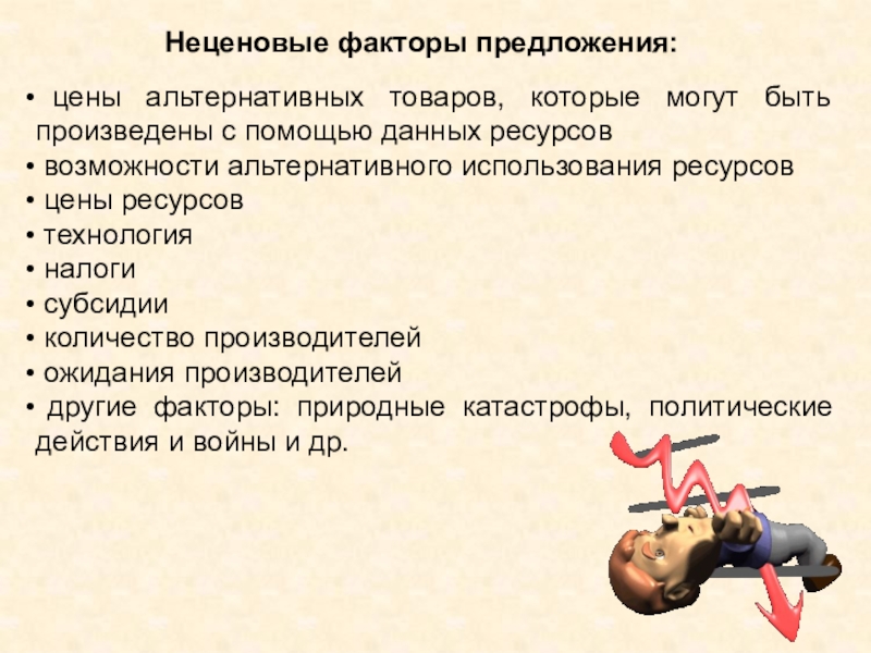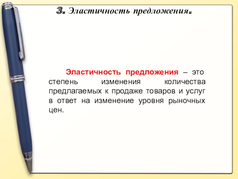 при росте его цены (или же насколько они захотят уменьшить продажу данного товара при снижении его цены). Данная реакция продавца на цену может зависеть от следующих факторов: