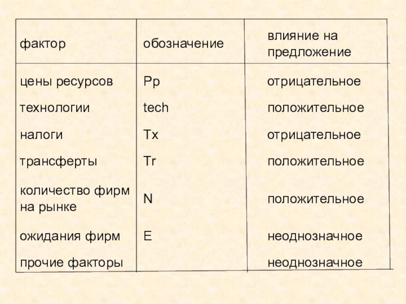 и кривая предложения сдвигается влево – вверх. Падение цен ресурсов сопровождается обратными последствиями.
