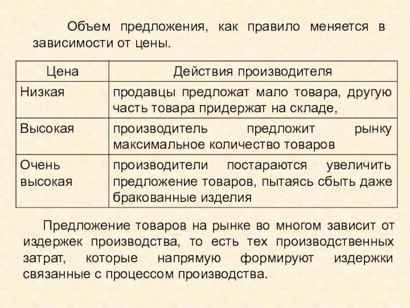Слайд 7 Объем предложения, как правило меняется в зависимости от цены.