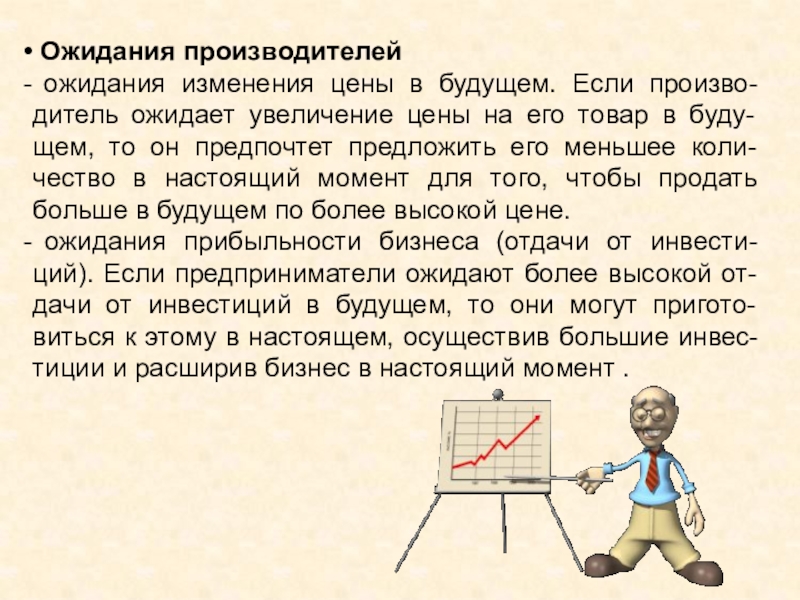 ожидания изменения цены в будущем. Если произво-дитель ожидает