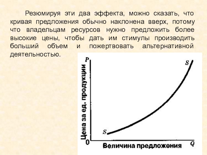 Слайд 11 Резюмируя эти два эффекта, можно сказать, что кривая предложения