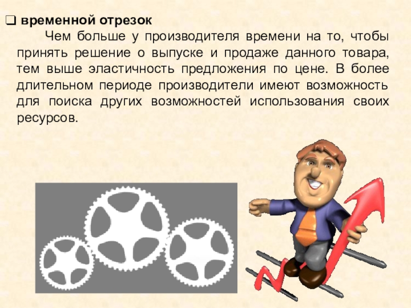 то, чтобы принять решение о выпуске и продаже данного товара, тем выше эластичность предложения по цене. В более длительном периоде производители имеют возможность для поиска других возможностей использования своих ресурсов.