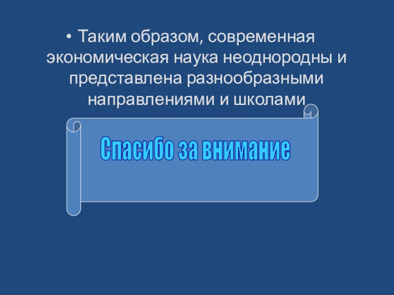 Слайд 13Таким образом, современная экономическая наука неоднородны и представлена разнообразными направлениями и