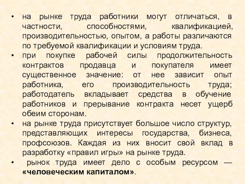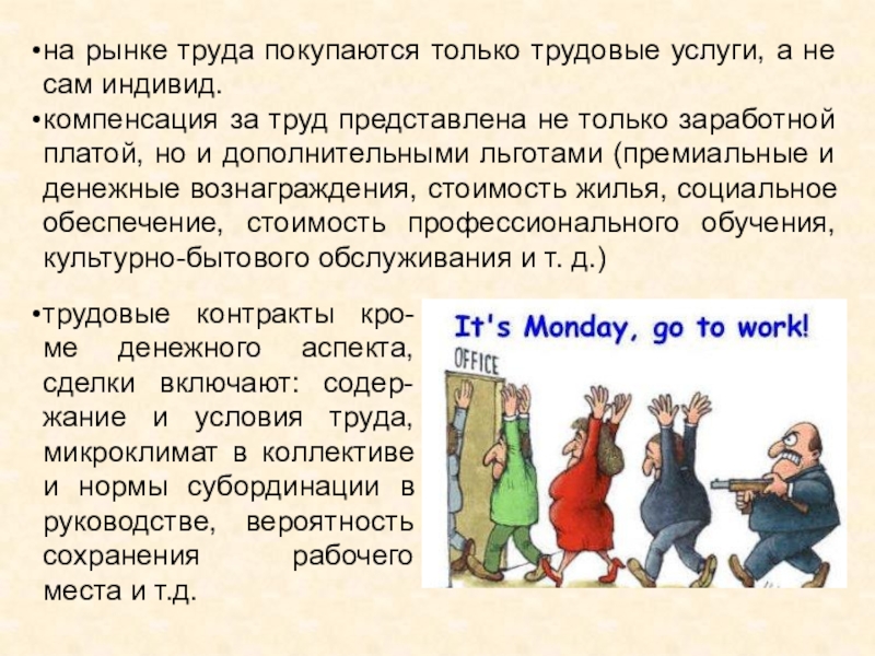 на рынке труда покупаются только трудовые услуги, а не сам индивид.
