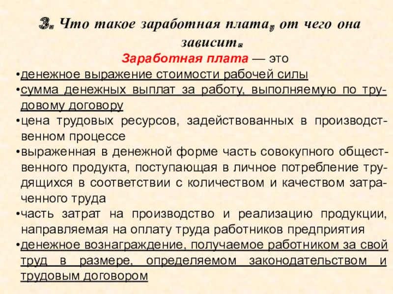 компенсация за труд представлена не только заработной платой, но и дополнительными льготами (премиальные и денежные вознаграждения, стоимость жилья, социальное обеспечение, стоимость профессионального обучения, культурно-бытового обслуживания и т. д.)