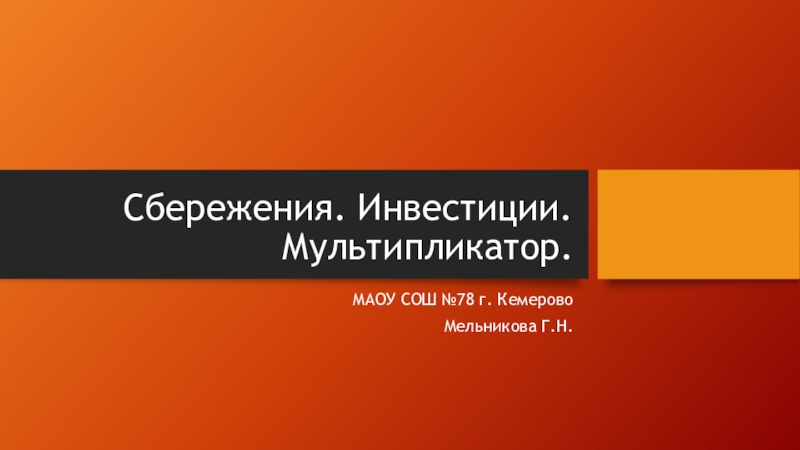 Слайд 1Сбережения. Инвестиции. Мультипликатор.