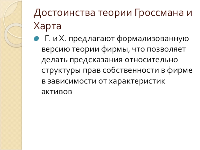 Слайд 32Достоинства теории Гроссмана и Харта