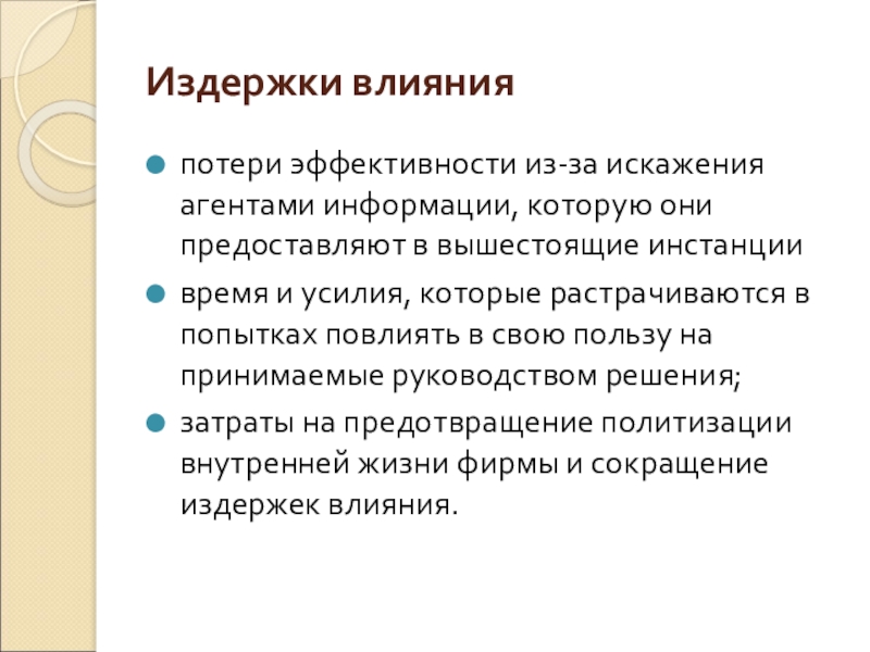 Слайд 25Издержки влияния